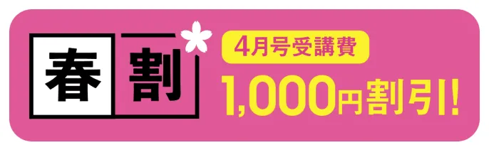 なんとこのキャンペーンを利用すると4月号の受講費が1,000円引きに…!
