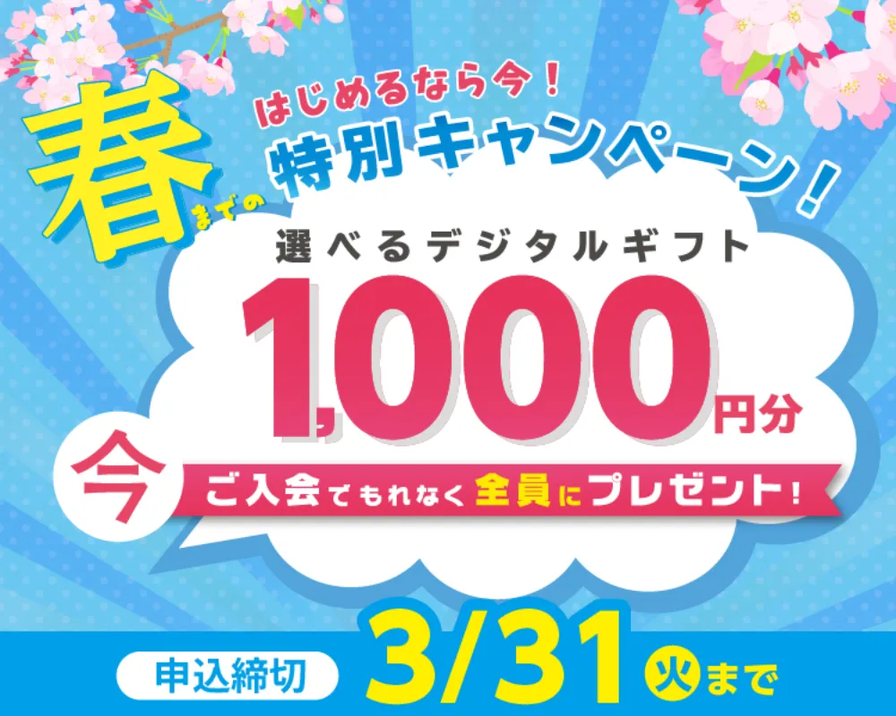 | キャンペーン名 | 春の入会応援キャンペーン |